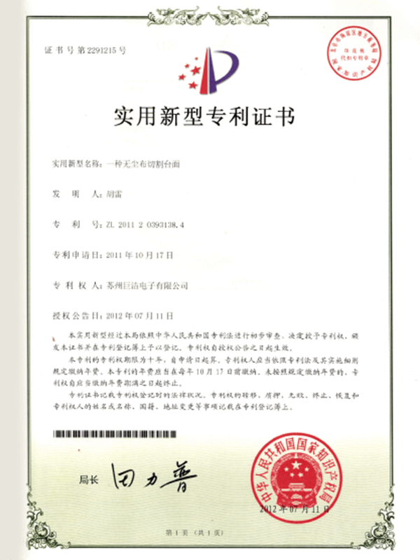 巨洁现在拥有20多个专利,巨洁超净已通过“国家高新技术企业”认证,“ISO9001,ISO14001,ISO45001”体系认证和“SGS”产品认证,2018年在江苏股权交易中心挂牌,企业代码“692630 ”。荣誉证书